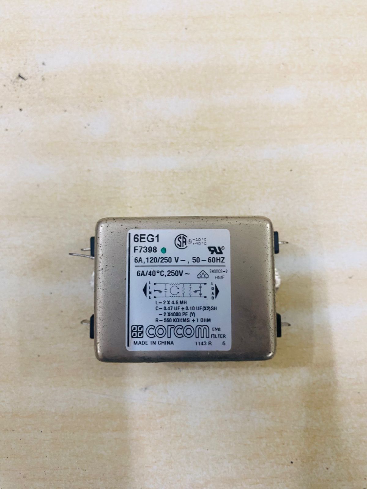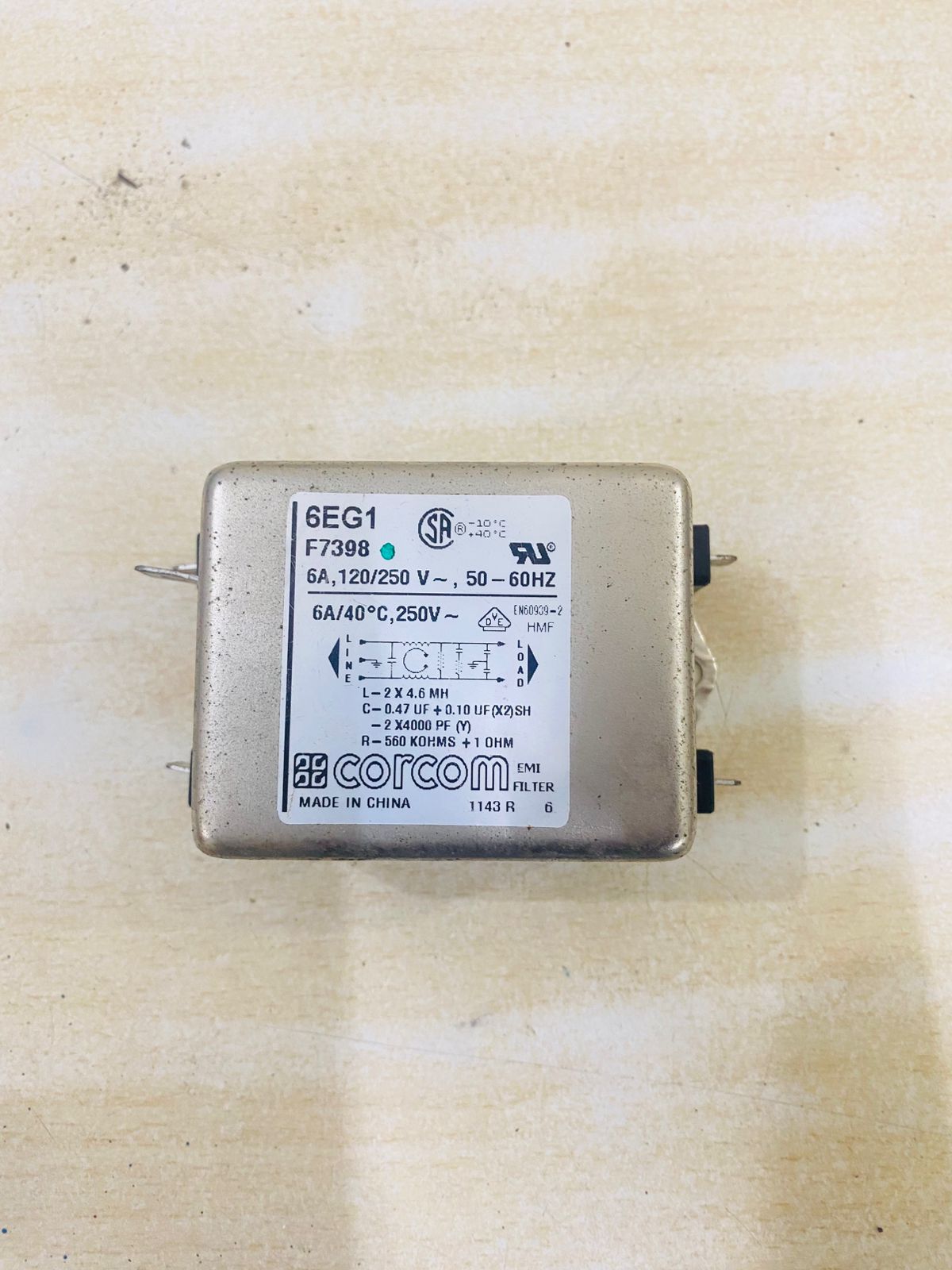 Rated for 6 amps at 120/250 volts AC (50–60 Hz), the Corcom 6EG1 is suitable for a wide range of industrial, commercial, and electronic systems. Its robust design effectively attenuates both common-mode and differential-mode noise, ensuring stable and interference-free operation.